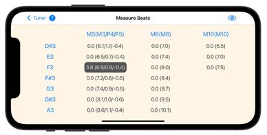 Actual beat rates of major third, sixth and tenth intervals related to the temperament can be measured. Intervals range from G#2 to F4. The beat rates of fourths, fifths and 4:2 octaves within the temperament can be calculated using the measured values.