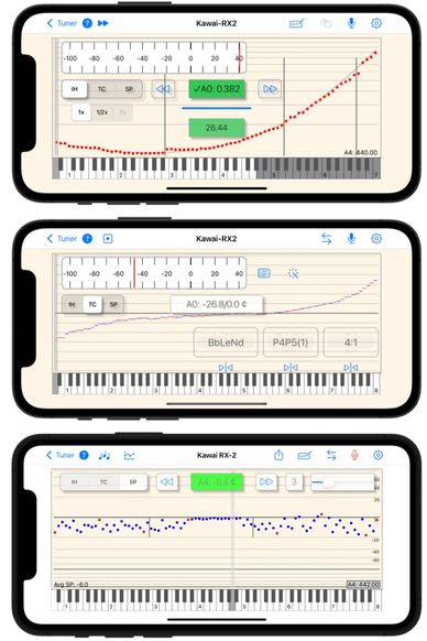 When inharmonicity measurements from A0 to C7 are complete Tuning Curve and Starting Pitch screens become available.